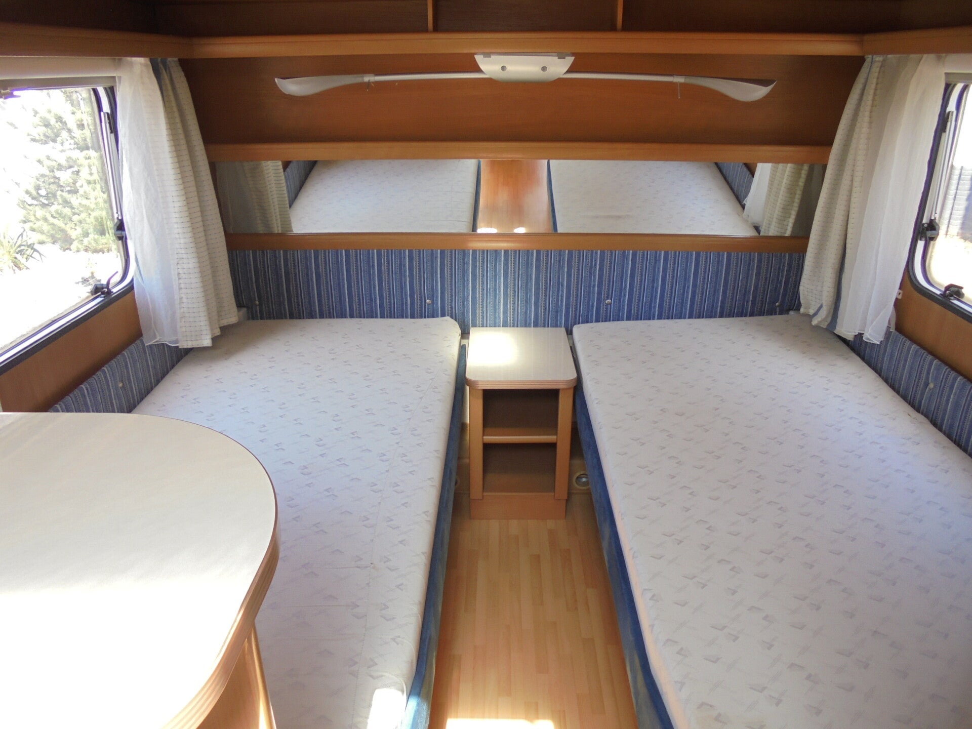 MTM:1500 kg, Tarra: 1318 kg, altijd binnen gestaan, nooit in gekookt, Alko chassis + antislipkoppeling, Automatische MOVER, badkamer met cassettetoilet + lavabo + douchevloer, boiler, Brandt voortent (2 jaar oud), Dometic koelkast + vriesvak, groot dakluik, hordeur, ramen met dubbel glas + verduistering + horren, reservewiel, ringverwarming, 4 slaapplaatsen ( 2x1-persoonsbed + rondzit), scheidingswand, serviceluik, watertank, info en afspraak CARAVANS-TOM telefonisch: 0032 (0) 495/528.528 of 0032 (0) 3/385.14.48.