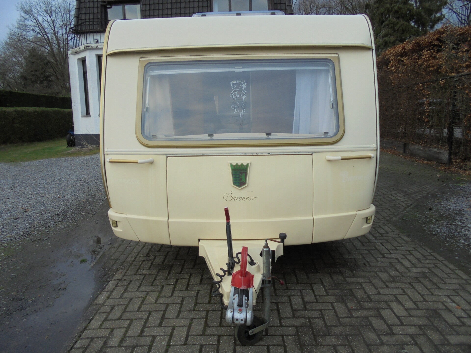 Tabbert Baronesse 740, 6/2002, 5 slaapplaatsen (vast bed + rondzit + treinzit), Dorema voortent