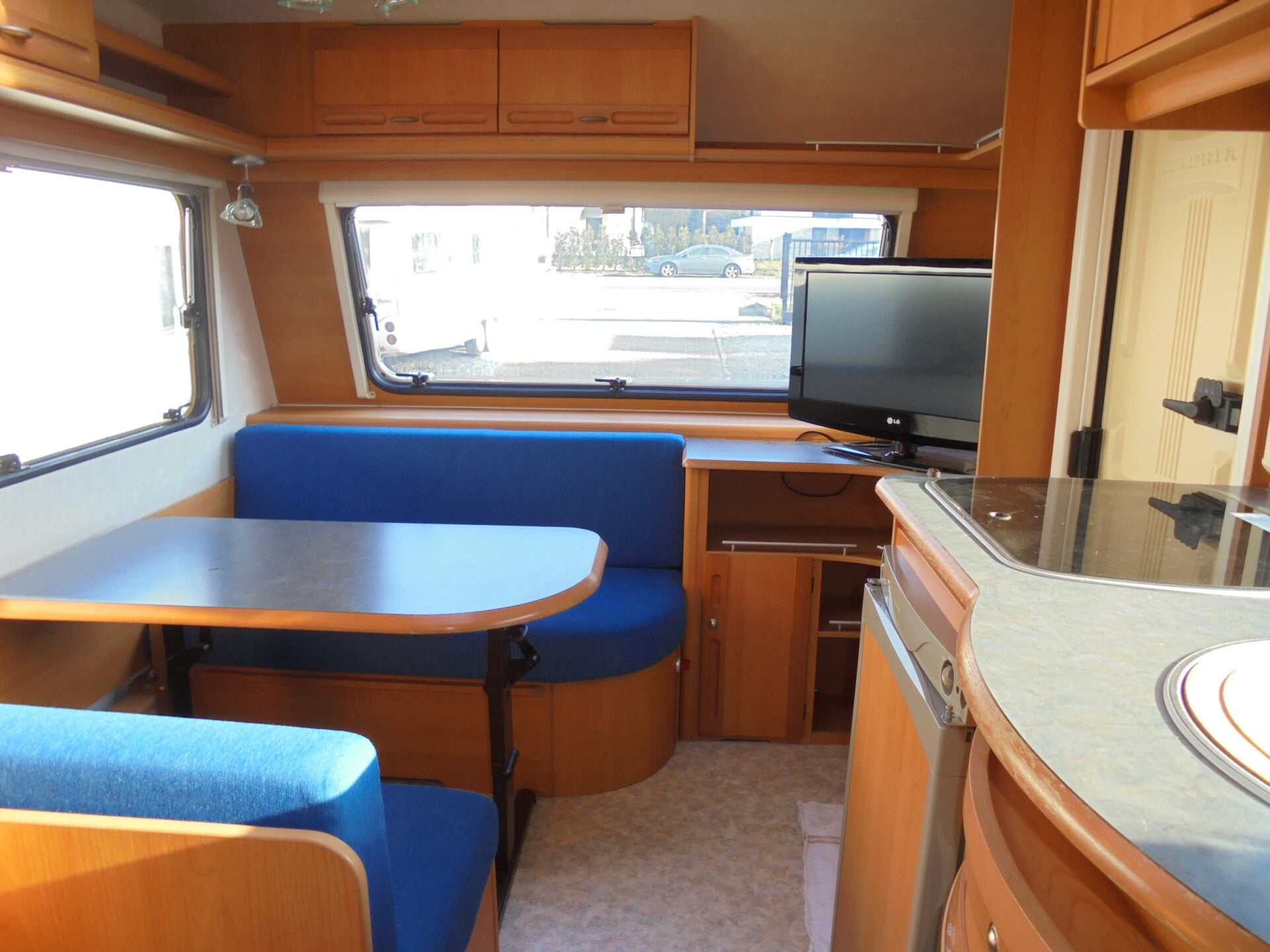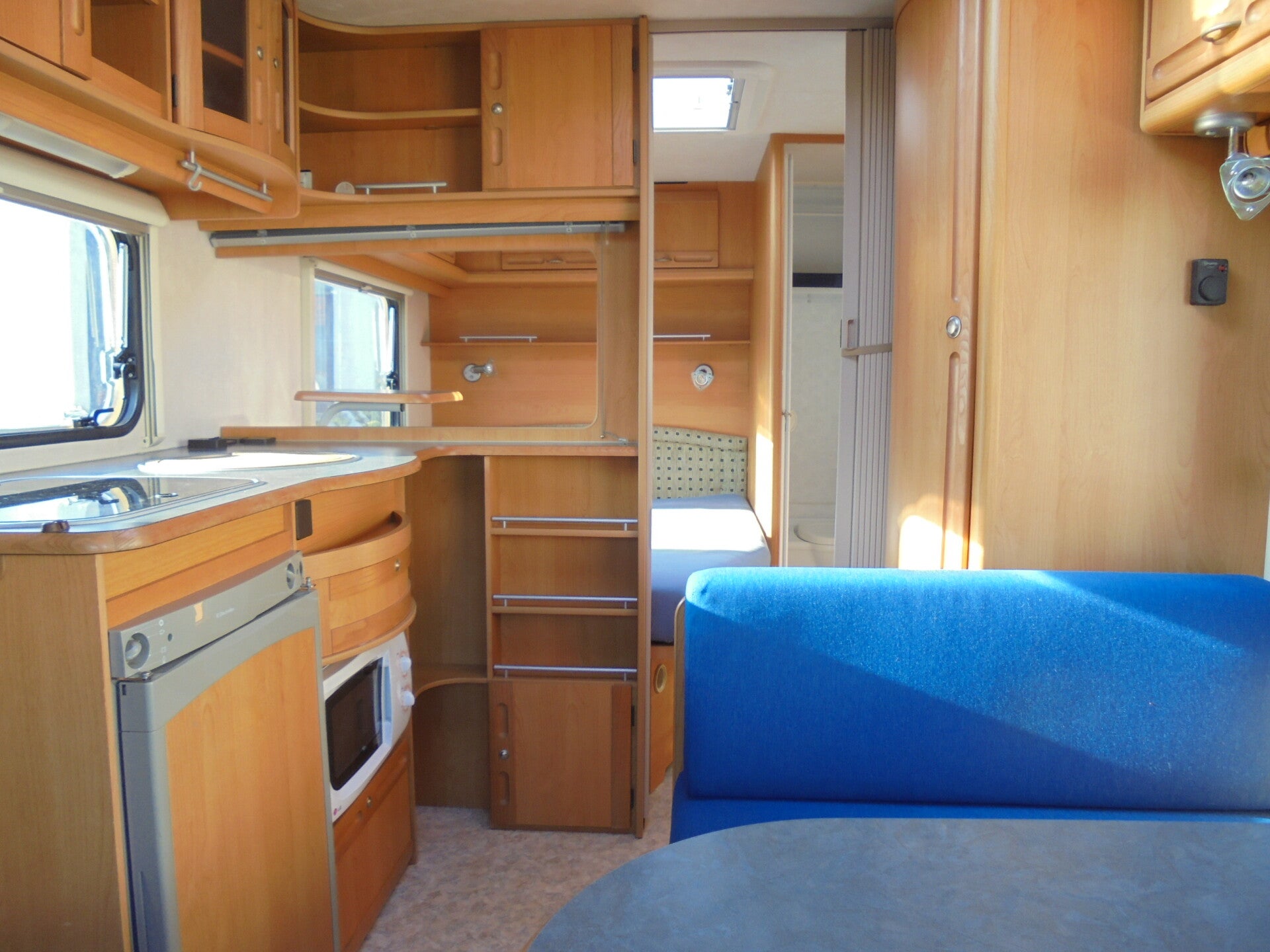 MTM: 1300 kg, Tarra: 1028 kg, altijd binnen gestaan, automatische MOVER, Alko chassis + antislipkoppeling, aluminium velgen, aparte lavabo hoek, boiler, douche ruimte met douche + cassette toilet, groot dakluik (2x), hordeur, koelkast + vriesvak, microgolfoven, nieuwe batterij, originele vloermatten erbij, ramen met dubbel glas + horren + verduistering, ringverwarming, scheidingswand, 4 slaapplaatsen ( Frans vast bed + treinzit), serviceluik, TV, voortent, watertank, info en afspraak CARAVANS-TOM telefonisch: 0032 (0) 495/528.528 of 0032 (0) 3/385.14.48.